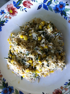 4. Now add onions and fry till they become translucent. And then add spinach and corn. Mix well and continue to cook for 5 min.