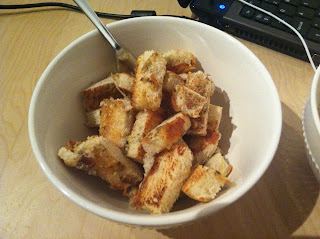 2. Heat a non-stick pan. Once it is hot enough add the bread pieces and gently roast them.