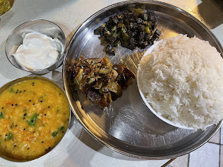For dinner have prepared south Indian , Andhra dishes. I made okra fry, tomato daal, eggplant curry served with rice and plain curd/ yogurt!